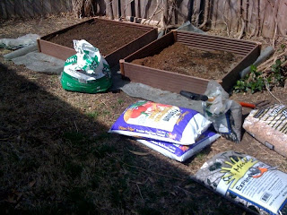 ...has begun. I used to have a great veggie garden at my old house, so I thought it was time to start one at my new house. I was going to build my own out of 4x4's this weekend, but then I came across this great raised garden made out of recycled material at Walmart for only $30 in the same measurements I needed but for less than the lumber would've cost. I got 2 & am still looking for a third. Anyway, love how easy the pieces were to snap together, voila. Added a mixture of compost, peat moss, expanded shale & surrounded them with untreated mulch. I will be putting the following in my little garden: 3 types of tomatoes, 3 peppers from sweet to spicy, green & red peppers, eggplant, strawberries, onions, garlic, basil, parsley, cilantro, rosemary. In the third garden I want to do a couple vine plants like cucumber, zucchini & possibly melon. Love gardening, am excited to plant everything this weekend & look forward to eating the fruits & veggies!
